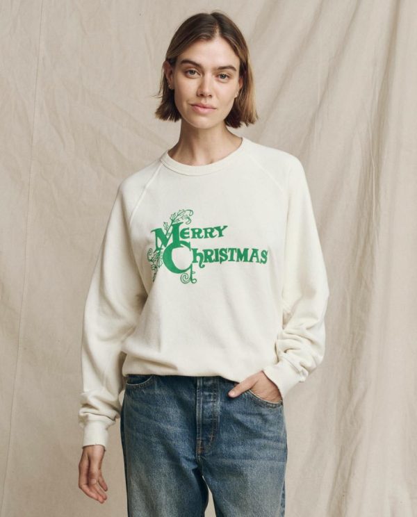 The Great. The College Sweatshirt. Graphic Washed White With Merry Christmas G | Women Novelty Tees & Sweats
