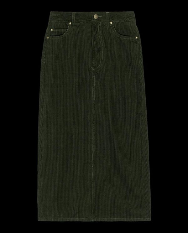 This fitted and long silhouette fits snug through the hips and straight through the body, with a back yoke and classic denim double stitching. Updated for Fall in a washed down, vintage inspired corduroy, the fit sits just below the waist and hits above the ankle with a slit up the center back body finished with a bar tack. Classic five-pocket details include a zip fly with metal button waist opening, finished with scoop pockets at the front and back patch pockets at the back.