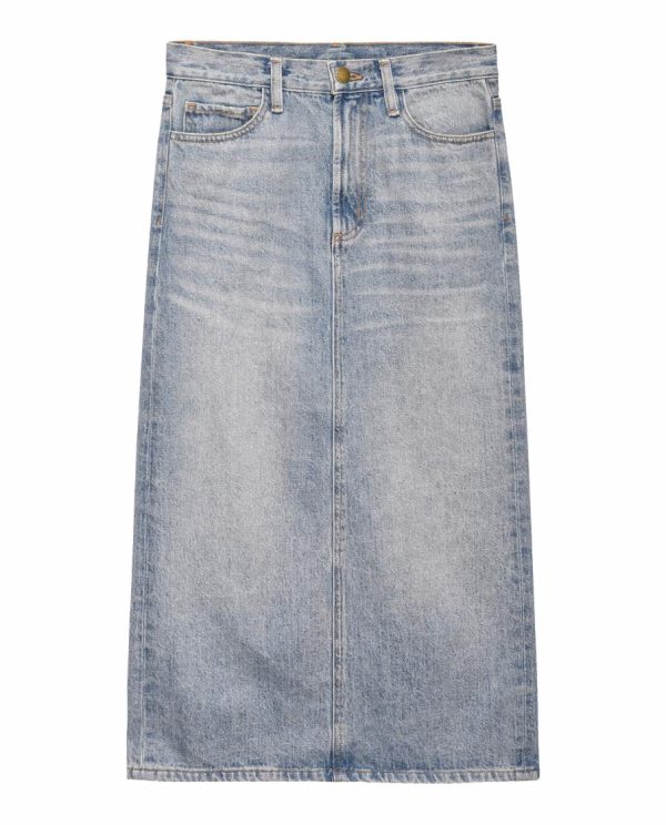 A versatile closet staple, The Column Skirt will be a forever favorite. This classic silhouette fits snug through the hips and straight through the body. It includes a back yoke with classic denim double stitching all around, and styles back to everything from tanks and tees to knits. The fit sits just below the waist and hits above the ankle with a slit up the center back body finished with a bar tack. Classic five-pocket details include a zip fly with metal button waist opening, finished with scoop pockets at the front and back patch pockets at the back.