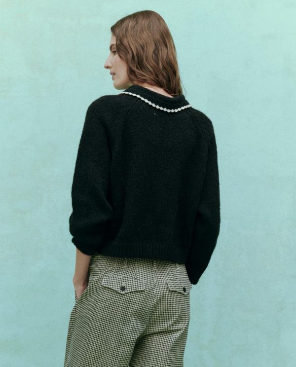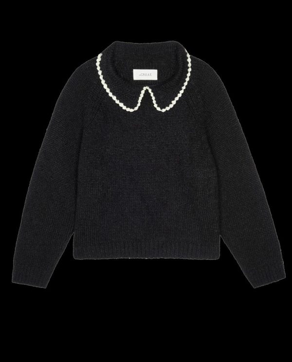 The Great. The Crochet Collar Pullover. Black With Soft White | Women Sweaters