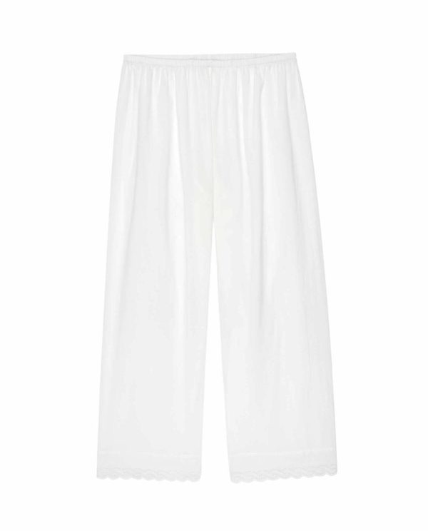 Perfect for slow mornings at home, The Eyelet Easy Sleep Pant. is the epitome of elevated comfort. Crafted from supersoft and lightweight cotton voile fabric, the pant is adorned with a Victorian-inspired eyelet lace trim and finished with a delicate scalloped edge. Designed for an easy pull-on fit with an elasticated waistband, these pants pair back to the matching The Eyelet Tank. or your favorite tee for a relaxed yet coordinated look.