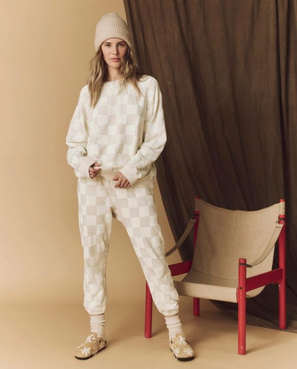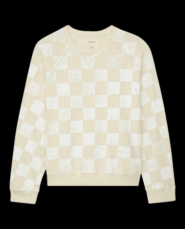 The Great. The Hand Stamped Slouch Sweatshirt. Washed White With White Check | Women Novelty Tees & Sweats