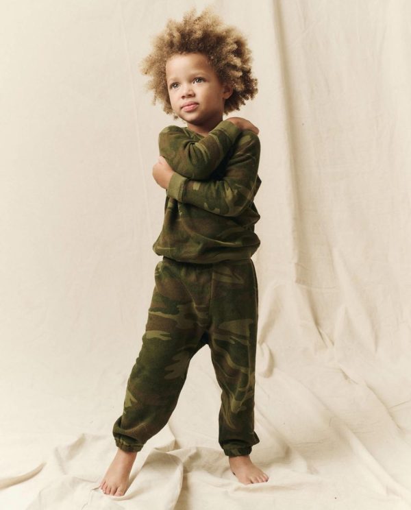 The littler version of our favorite College Sweatshirt. Now offered in a new authentic camo print, perfect for when you’re in the mood to play with prints. This super cozy layer is based on our favorite vintage sweatshirt body and is cut from washed terry that’s perfectly faded, with the signature slit on the left cuff that makes it unmistakably ours. Also available in women’s and men’s sizes for the family look we can’t resist.