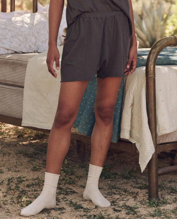 Perfect for sleeping or lounging, The Lounge Short. has a drop paneled rise, elasticized waist, and patch pockets. Meant to be worn long and slouchy, it has a cut hem that sits at a comfortably lower inseam, perfect for warm summer nights or lounging any time of day.
