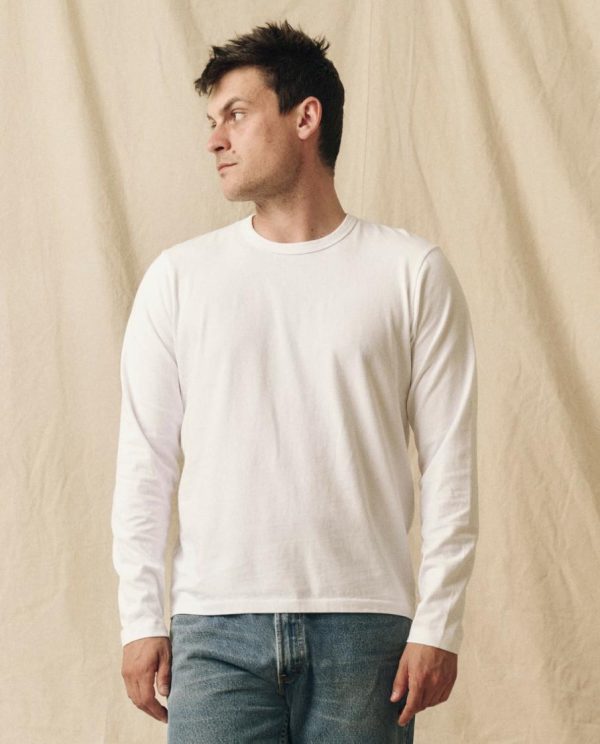 The Great. The Men’s Pure Knits Long Sleeve Slim Crew. True White | Men Tees & Sweats