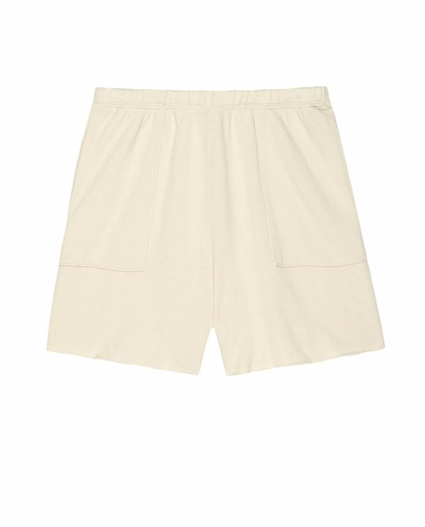 This sweat short is meant to be worn slouchy. It features both an elastic waistband and an interior cotton drawstring with brass tips, so it can be worn either slung low on the hips or high at the waist. The lightly frayed raw hem is cut long on the leg, and it features forever practical patch pockets. Our knits are crafted here in Los Angeles, ensuring authenticity, beauty and uniqueness in that no two pieces are alike.