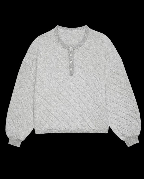 Lovingly made locally in Los Angeles, The Quilted Henley Sleep Sweatshirt. is crafted from lightly padded and ultra-soft quilted cotton. This silhouette has a relaxed and boxy fit, with a slightly cropped length, billowy sleeves, a henley placket, and rib at the hemline and cuffs.