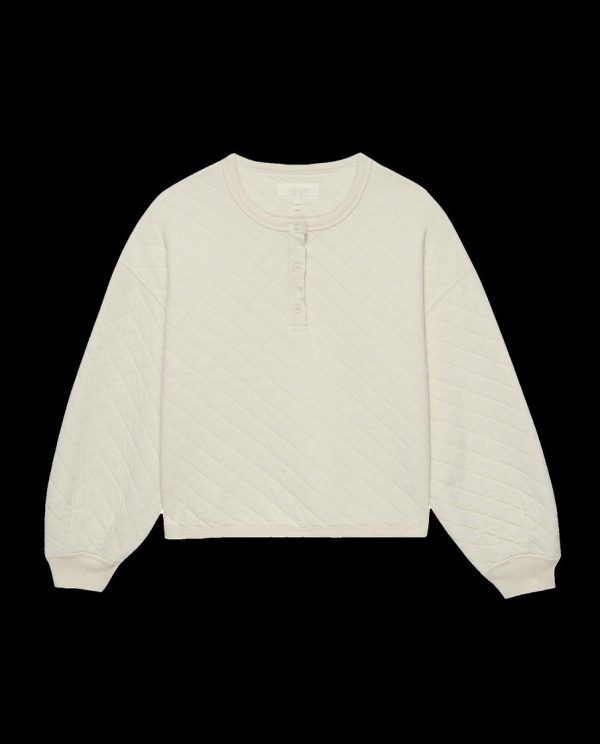 The Great. The Quilted Henley Sleep Sweatshirt. Washed White | Women Sleep Tops