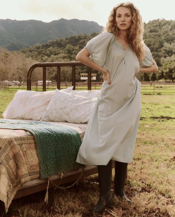 This dreamy dress is crafted from the softest 100% cotton and printed in the charming Blue Star Print. This Victorian-inspired silhouette has a relaxed fit and features a low scoop neck, delicate front button placket, and dainty puff sleeves.
