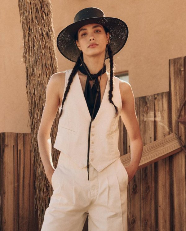 The Suit Vest is a nod to menswear suiting with its single-breasted construction, designed for a snug and structured fit. Classic elements include the low neck opening, corozo buttons, welt pockets, princess seams, angled hem shape, and back tab for waist cinching. Reimagined in lightweight cotton hemp denim for a casual take on a tailored suit, it is versatile enough to wear alone or paired with The Sculpted Trouser for a casual-yet-tailored complete look.