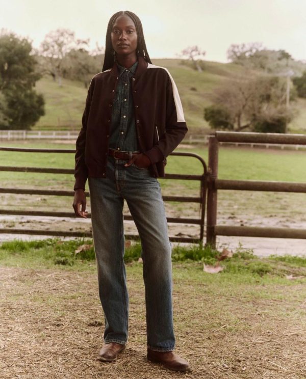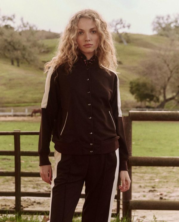 Inspired by athletic team uniforms of the 1970s, The Starter Jacket is cut from an authentic stretch tricot knit with the kind of vintage hand feel we love. It features a relaxed fit with a flattering cropped length and a naturally pitched hem line, snap-front placket, front welt pockets, and rib trim at sleeve cuffs, stand collar, and hem.