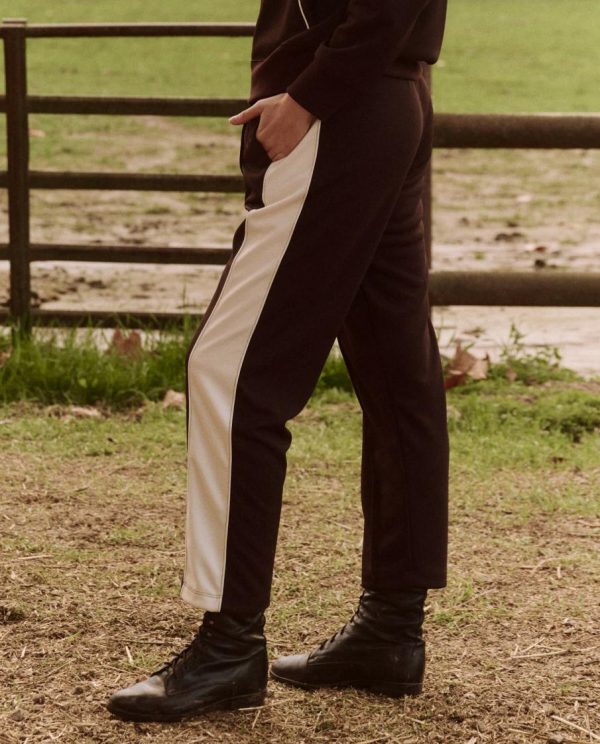 Inspired by athletic team uniforms of the 1970s, these pants are cut from an authentic stretch tricot knit with the kind of vintage hand feel we love. These relaxed pants features a straight cut leg with a wide elasticated waistband referencing vintage athleticwear, vertical pintucks down the leg, and cream contrast paneling down the sides for a true vintage look.